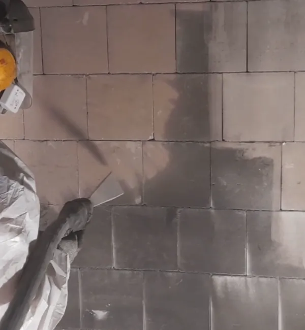Damit die Trockeneisreinigung kontrolliert und sauber abläuft, wird der Bereich vorbereitet (abschotten/abdecken, Staubführung und Sicherheitsmaßnahmen). Anschließend wählen wir Parameter wie Druck, Pelletmenge und Abstand passend zum Untergrund – gerade bei mineralischen Oberflächen ist das entscheidend.